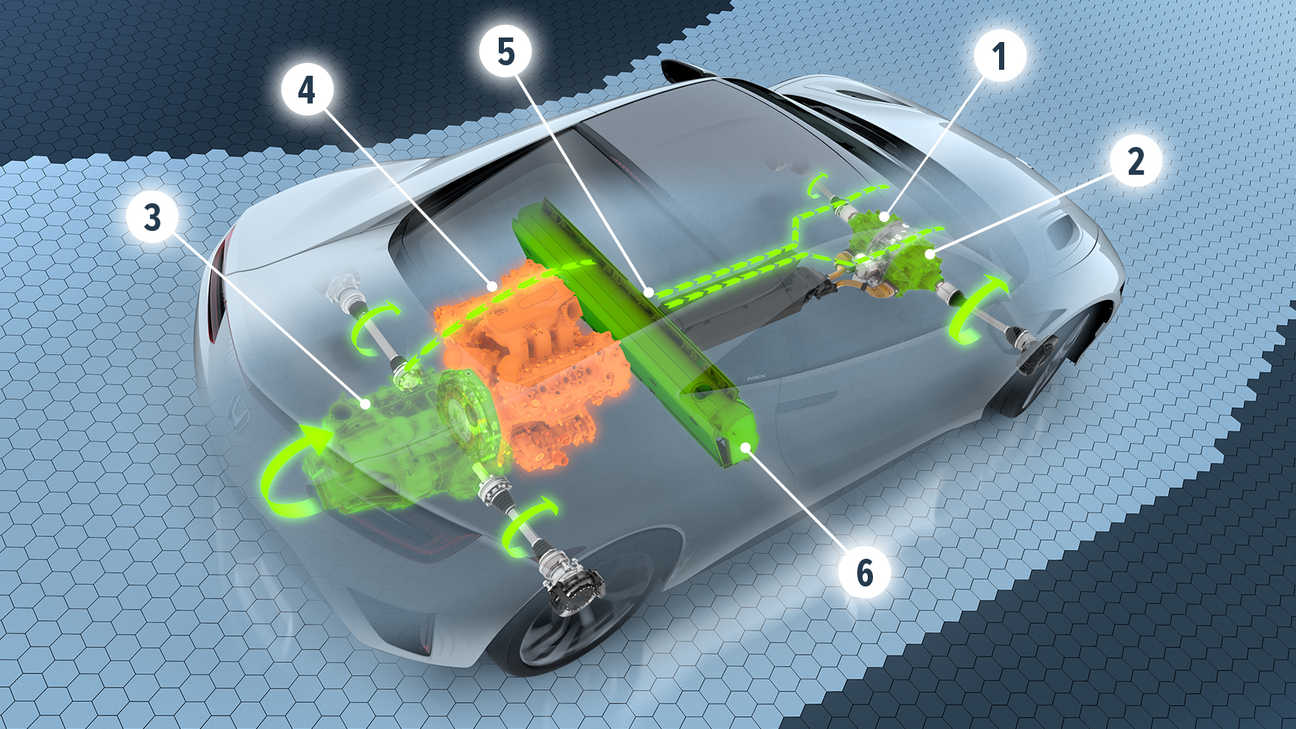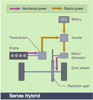 Da un punto di vista tecnologico la configurazione attualmente migliore prevede l’accoppiamento all’albero di rotazione del motore endotermico di un motore/generatore elettrico e il posizionamento di ulteriori motori, uno per ruota o uno per asse, posizionati o sulle ruote o all’asse posteriore o anteriore, in base alla tipologia di trazione che si vuole, posteriore o anteriore rispettivamente. Per la trazione integrale basta moltiplicare il numero di motori da accoppiare agli assi di trasmissione presenti.