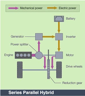 Diverse sono le configurazioni possibili. Oltre al funzionamento in solo modalità elettrica, o nella modalità in cui è in funzione il motore endotermico, si possono avere diverse configurazioni di accoppiamento motore elettrico vs motore endotermico vs trazione come illustrato nelle figure successive (fonte: Center for Advanced Automotive Technology).