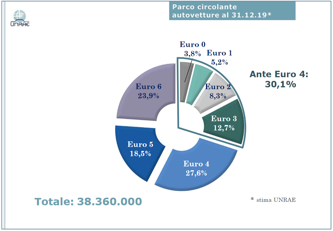 Le stime del UNRAE sul parco macchine circolante in Italia possono chiarire il tutto. Su una stima di oltre 38 milioni di autoveicoli attualmente immatricolati in Italia, il 30%, ossia oltre 11 milioni, sono ante normativa Euro 4, ossia veicoli ad alto tasso di inquinamento con alle spalle almeno 11-12 anni di vita, quindi troppi! Chi possiede questi veicoli, salvo casi particolari, non è interessato ad investire almeno 20-30 mila euro per il passaggio ad un nuovo veicolo ibrido/elettrico. L’usato che consegnerebbe in concessionario non avrebbe più valore di permuta, quindi non avrebbe un ritorno economico. Questa tipologia di utente in molti casi non potrebbe sostenere un finanziamento per il passaggio ad un’auto nuova. Quindi ci si dovrà inventare qualcosa.