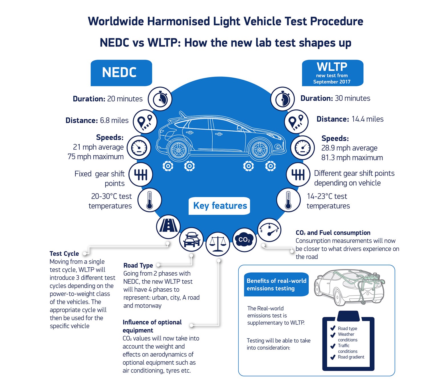 Il ciclo WLTP (Worldwide harmonized light vehicles test procedure), utilizzato attualmente per valutare i consumi e l’inquinamento degli autoveicoli, ha determinato un netto passo in avanti rispetto al precedente ciclo NEDC (New Europea Driving Cycle) o ad altri cicli di test disponibili, eseguiti praticamente tutti in laboratorio e non su strada. Il confronto risulta chiaro dalle figure e diagrammi seguenti, da cui si desume che il ciclo WLTP risulta già più vicino ad un uso reale dell’autoveicolo.