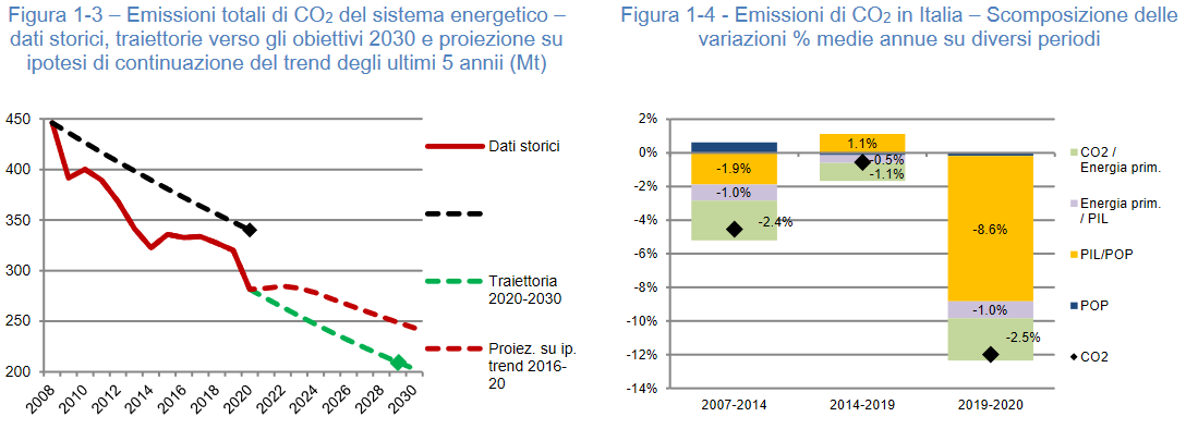 In Italia siamo ancora legati agli impianti termoelettrici ma stiamo pian piano spostandoci verso gli impianti alimentati da fonti rinnovabili. I rapporti ENEA sul panorama italiano mostrano una tendenza alla decarbonizzazione costante (vedi immagini seguenti), quindi nei prossimi anni l’energia utilizzata per ricaricare i veicoli deriverà in modo sempre più predominante da fonti energetiche “pulite”. In base ai protocolli firmati da molti Stati la tendenza globale sarà, si spera, di questo tipo.