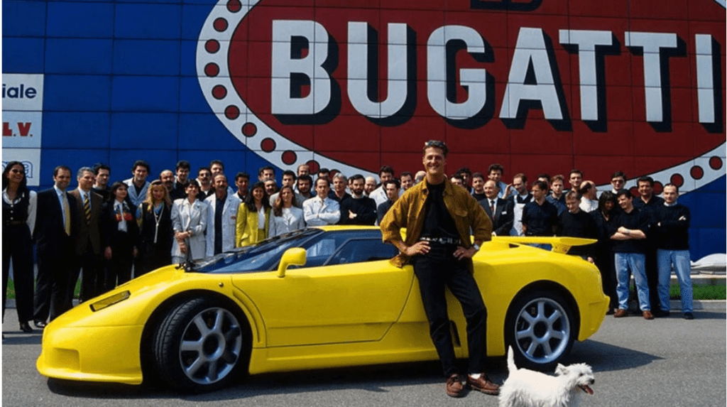 “… Gialla! La mia deve essere gialla!…”. Così mi immagino abbia pensato Michael Schumacher quando vide per la prima volta la Bugatti EB110 e così fece.